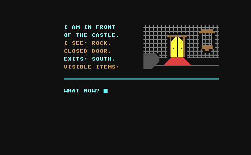 This game also has a few red herrings and useless objects in it. A common problem in these games is that you can only carry five objects at any given time and there are far more than five objects in the game. Usually I have a "central repository" room where I just collect all the objects and drop them in one room, then I always know where something is if I get the urge to try one particular object on a puzzle. Most objects only have a lifespan of one use per game but you never can tell when something might get used twice........
