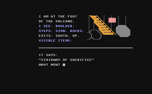 The Volcano of Raka-Tua is a smallish game and its a "treasure" hunt game. You have to store 5 treasures in a special spot in order to win the game. I have not played this game much yet so it is not yet known if there are any bugs or if the game is winnable.