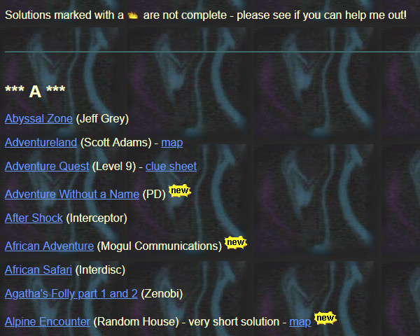 I know, that silly site name keeps coming back to haunt me. Nobody can remember Classic Adventures Solution Archive (indeed, it took me years to remember whether Adventure or Solution were the plural one), so CASA is a nice, if meaningless moniker. But a lot of people still think of it only as a repository for walkthroughs and maps - which it is, but it is at least striving to be more. In my next life, I'll pick a better site name and address from the get-go!